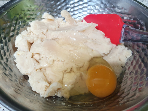 잘 섞어 준 후엔 달걀 1개를 넣어