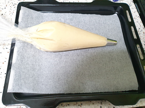 반죽을 넣고 먹기 좋은 크기로 짜 줍니다.