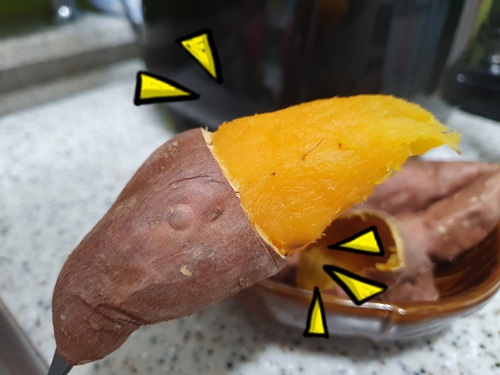 고구마 중간에 칼집을 넣어 주는 겁니다.