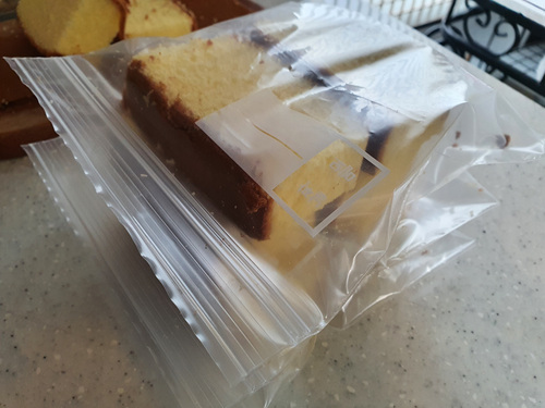 조각된 카스테라는 1회용 지퍼백에 담아 주세요.