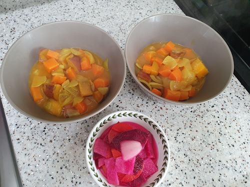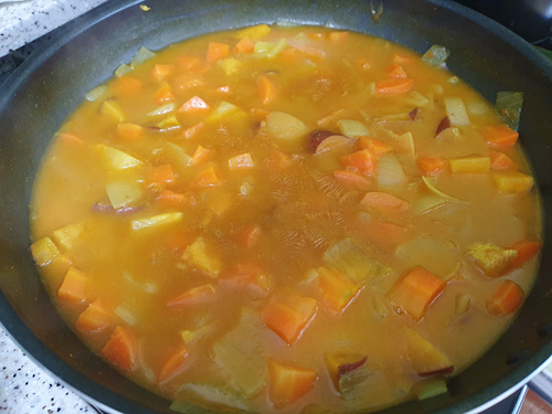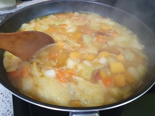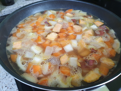 무엇보다도 채소들이 씹히는 식감도 좋지만 감자 대신 고구마를 넣어 더 진하고 맛있습니다.
