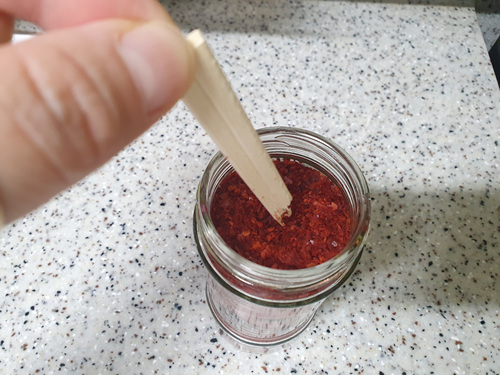 소분으로 나눠 고추가루를 보관한다면 꼭 나무젓가락을 넣어 두세요.