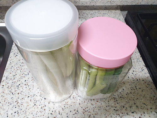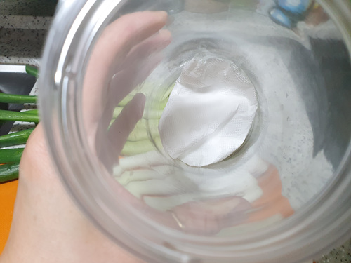 통 안에 이렇게 파를 담아 놓은 뒤