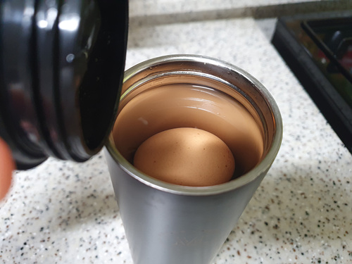달걀을 텀블러에 넣고 뜨거운 물을 부어 준 뒤