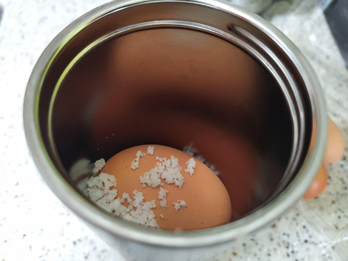 참고로 달걀을 텀블러에 넣을때는 눕혀서