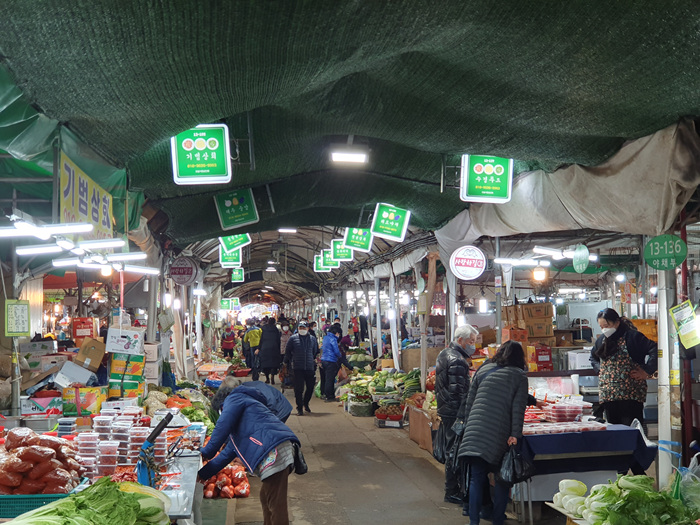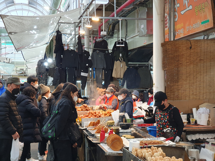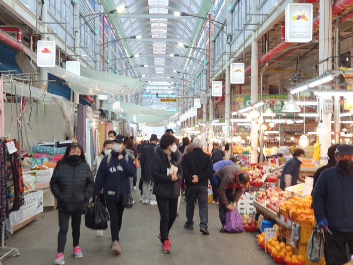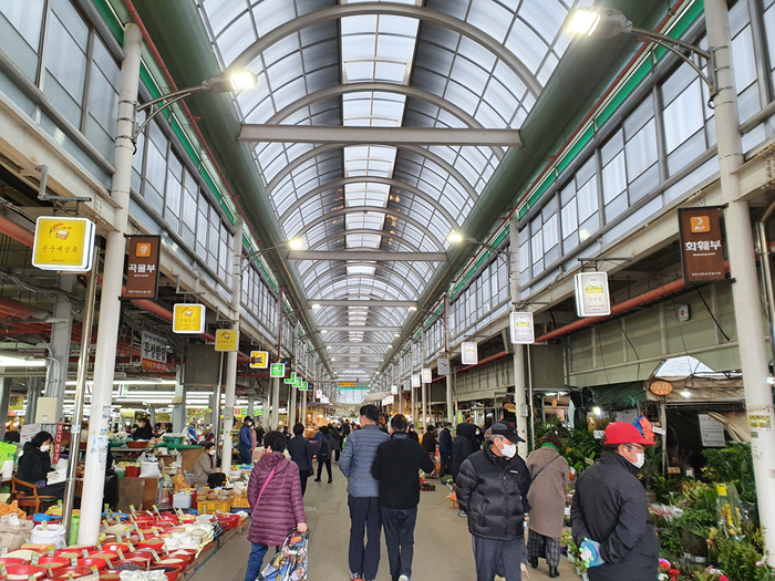 제주도에서 나름 제일 크다는 오일시장인데 평소와 달리 사람들이 그렇게 많지 않았다. 아마도 코로나19 영향때문일런지도 모른다. 예전에 갔을때는 사람들과 부대끼며 걸었던 기억이 있는데 지금은 한결 여유로운 시장의 모습이었다.