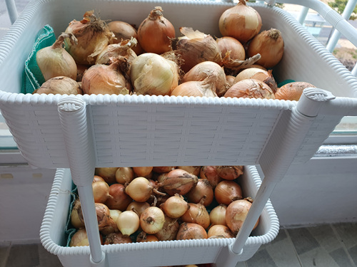 양파를 트레이에 올려주고 바람이 잘 통하는 곳에