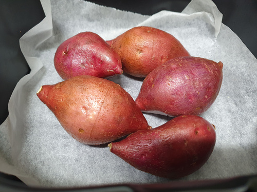 전 고구마를 에어프라이어에 구워 먹는 게 제일 맛있더라고요. 사실 물 없이 할 수 있어 편하기도 하고요.