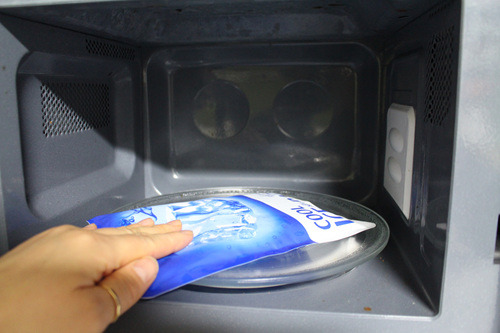 이제 액체 상태가 된 아이스팩을 전자레인지에 2분 돌려줍니다.