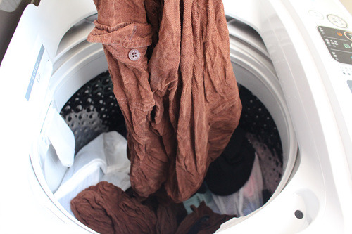 섬유유연제를 넣고 세탁기 한 번 더 돌렸어요.
