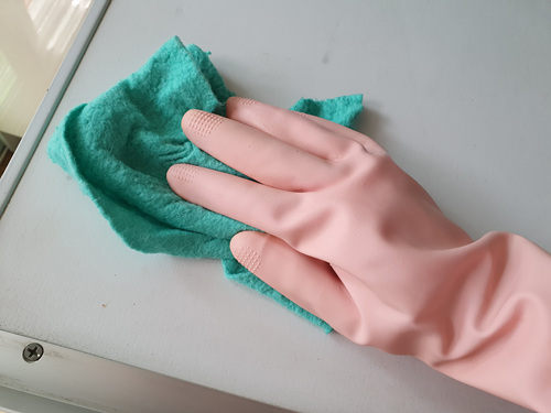 마른행주에 손소독제를 묻혀 먼지가 낀 곳과 꼬질한 때가 있는 곳을 닦아 주세요. 그럼.....