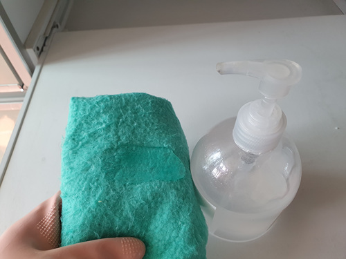마른행주에 손소독제를 묻혀 먼지가 낀 곳과 꼬질한 때가 있는 곳을 닦아 주세요. 그럼.....