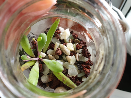 이쁜 다육이를 심었어요. 컵이다 보니 화분과 달리 독특하고 더 이쁜 것 같아요.