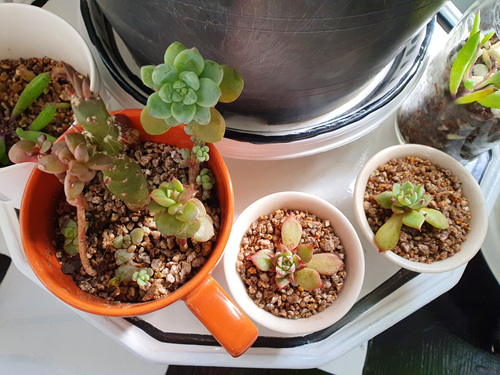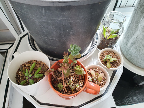 작은 종지도 다육이를 심어 놓으니 너무 이쁘더라고요. 봄철, 기분 전환하기 딱 좋은 화분이 되었어요.