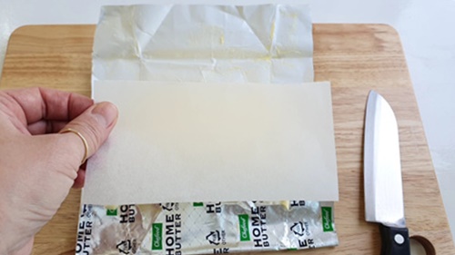 마지막으로 맨 끝 부분 버터를 감쌀 종이 포일만 살짝 붙이면 됩니다.