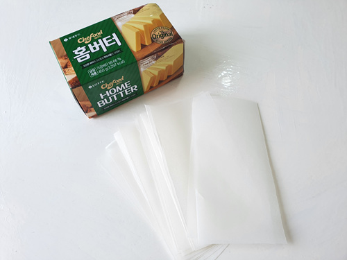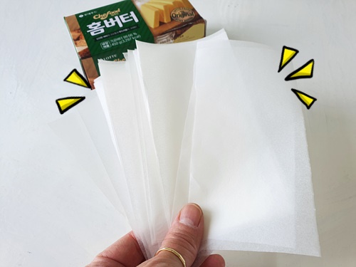마지막으로 맨 끝 부분 버터를 감쌀 종이 포일만 살짝 붙이면 됩니다.