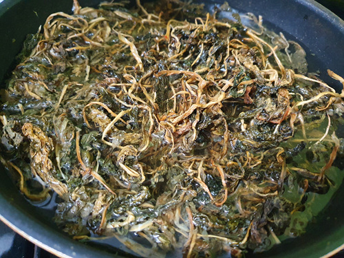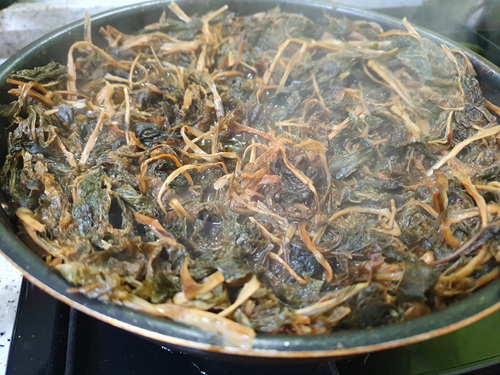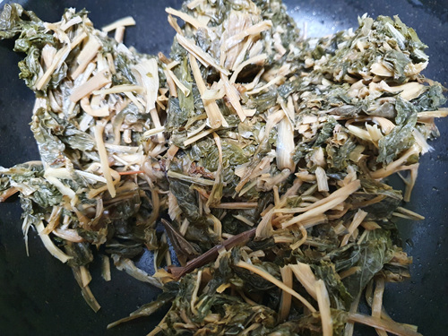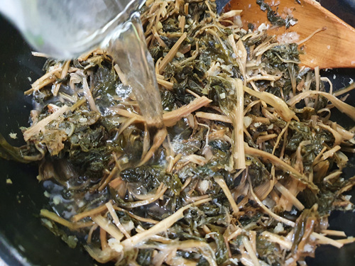 말린 취나물을 물이 충분히 잠길 정도로 부어준 뒤 팔팔 끓입니다.