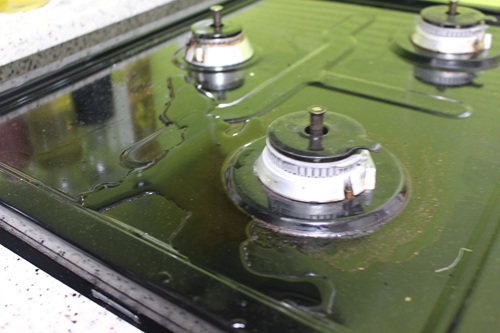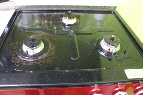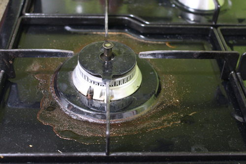 음식을 조리하다 국물이 넘쳐 지저분하게 눌어붙은 모습입니다.