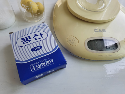 붕산과 달걀노른자의 비율을 1 : 1로 맞추시면 됩니다.