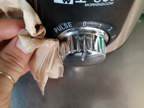 티슈에 소주를 묻혀 믹서기 외부 닦아 주세요.