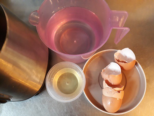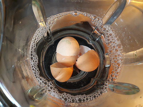 거품과 함께 너무도 잘 갈린 달걀껍질은 다 버려 주시고 깨끗하게 헹궈 주기만 하면 됩니다.