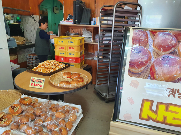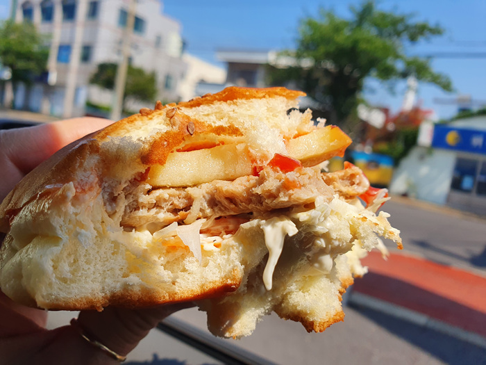 서귀포에 볼일도 볼 겸 가는 길에 우연히 SNS에서 핫하다는 빵집을 보게 되었지요. 그곳에선 바로 추억의 사라다 햄버거가 그렇게 유명하다고 해 저도 하나 먹어 보기로 했습니다.