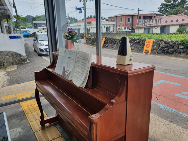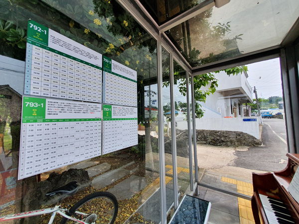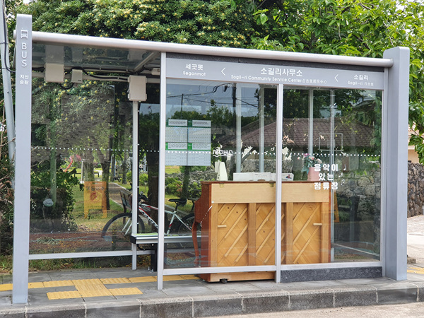 제주도는 다른 지역과 달리 버스 간격 시간이 꽤 길어 지루하기까지 한데 이곳은 버스를 기다리면서 피아노를 치고 있으면 시간 가는 줄 모르겠더라고요.