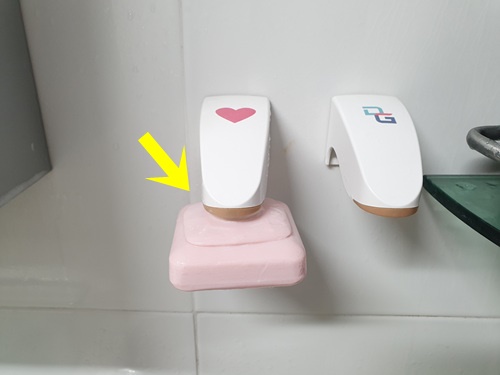 붙이는 곳에 잘 두어도 사실 저 말고는 대부분 세숫비누를 사용 후에는 요렇게 그냥 두더라고요.