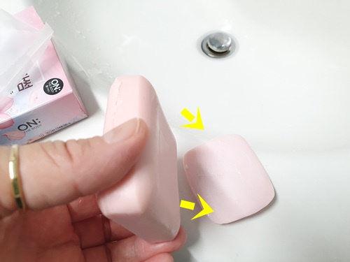 새 세숫비누를 붙여서 사용할 거거든요.