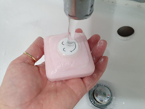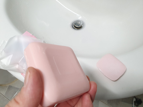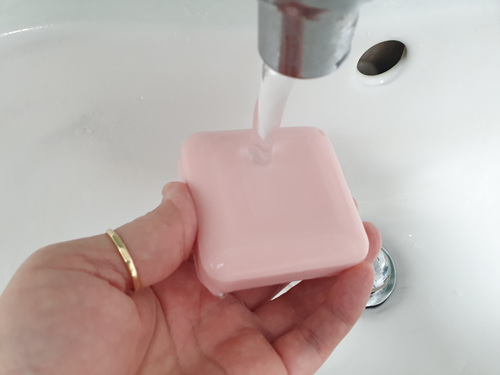 먼저 새 세숫비누를 물에 묻힌 뒤..
