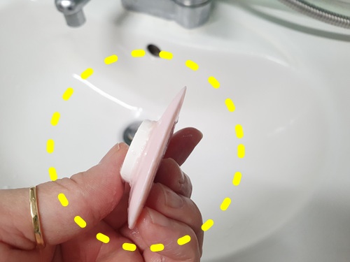 붙인 후엔 새 세숫비누가 보이게 거꾸로 두세요.