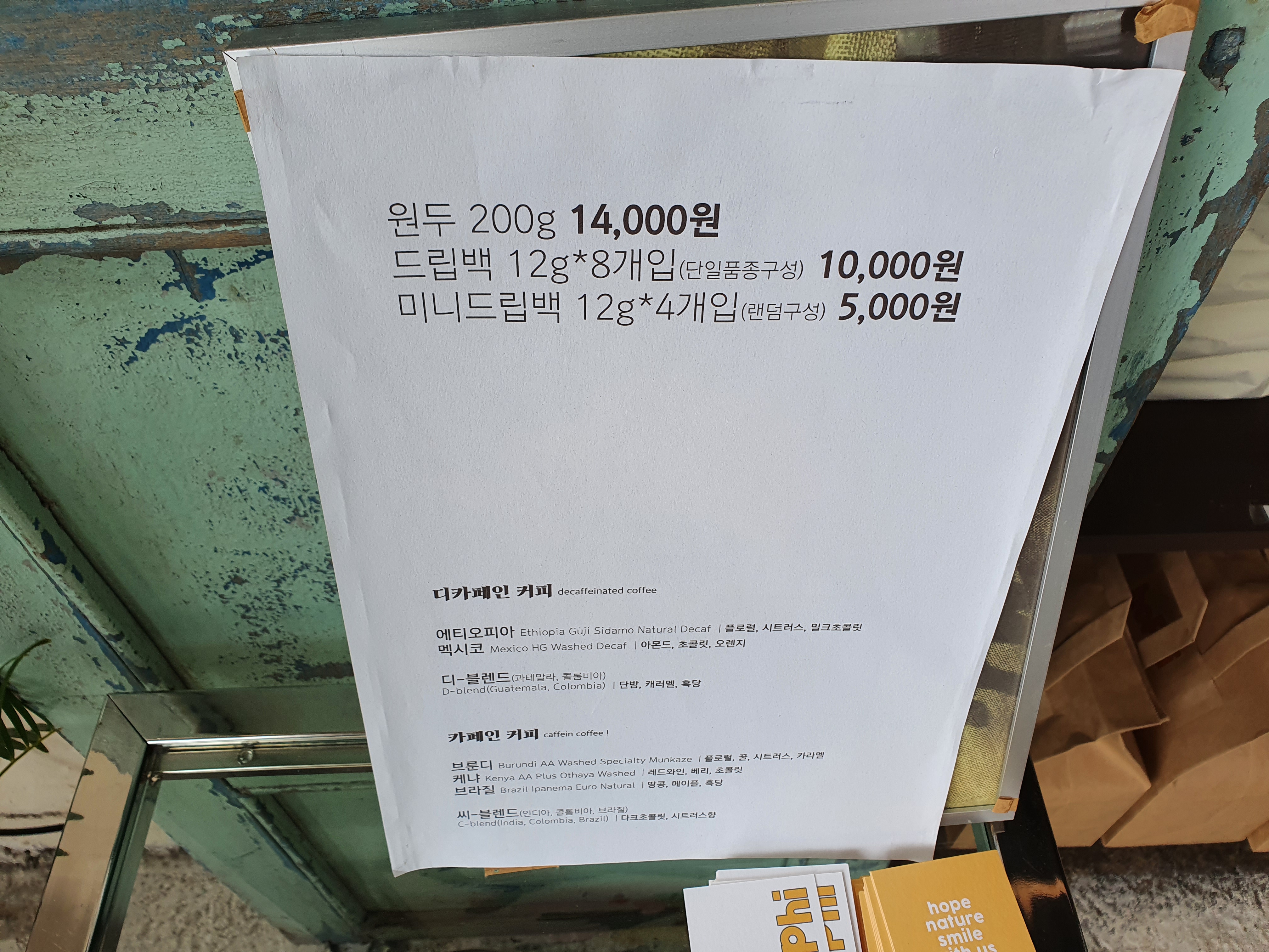이곳이 유명한 이유는 융드립 전문 커피숍이라는 점과 테이크아웃 전문이라는 것입니다.