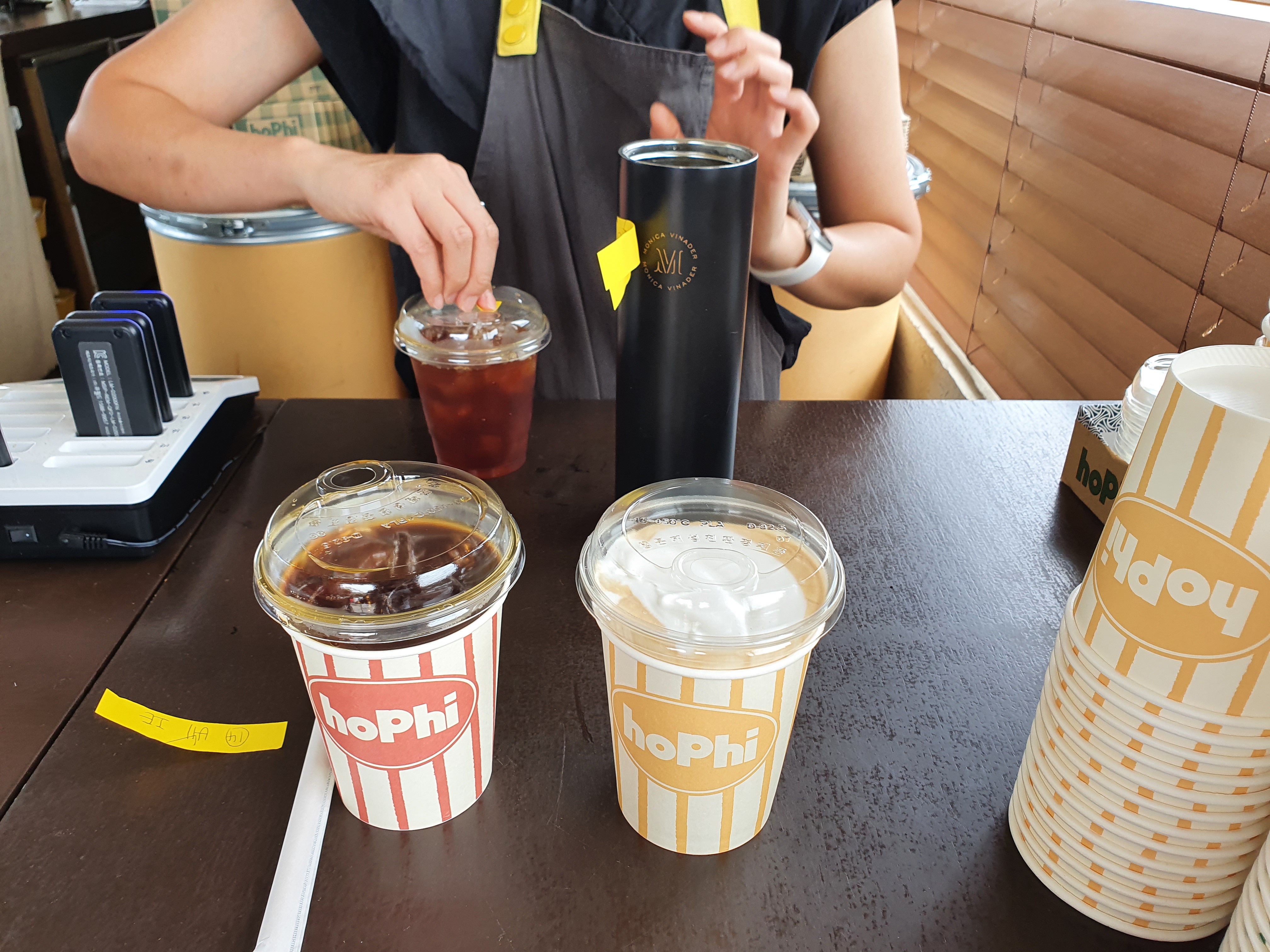 대부분 1회용 컵이지만 전 평소 텀블러를 갖고 다니는 습관에 저 혼자 뿐인 것 같았어요.