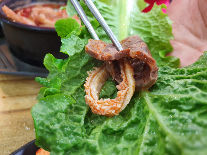 내장탕이나 해장국에 들어 있는 고기는 멜젓에 찍어서 상추에 쌈 사 먹으면 맛있습니다.