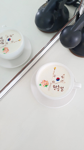 현충일을 맞아 태극기를 커피 위에 그리면서 이번 주에 마셨던 모닝커피 몇 컷을 올려 봤어요.