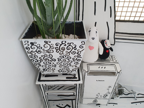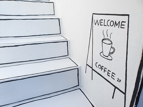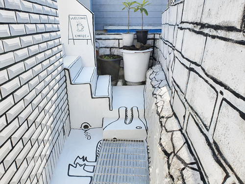 가게가 워낙 작다 보니 넓게 보이기 하기 위해 시작한 2d 스타일은 나름 최고의 인테리어 효과를 내고 있답니다.