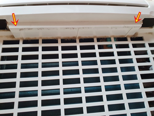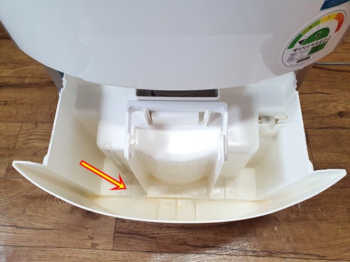 필터 분리하고 난 뒤 제습기 안쪽을 보면 이곳도 먼지는 물론 물 때문인지 곰팡이가 끼어 있어요. 이곳도 깨끗이 닦아줘야 합니다.