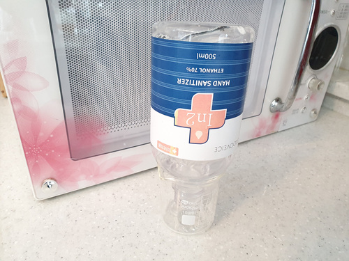 손소독제를 거꾸로 해 놓으면 자연스럽게 통 안에 남아 있는 게 나오는 거죠.