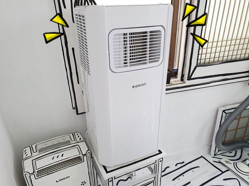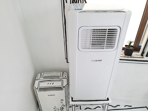 깨끗이 닦은 이동식 에어컨은 올여름 한 철 내내 시원하게 해 줄 자리에 자리 잡고 올려 뒀지요.