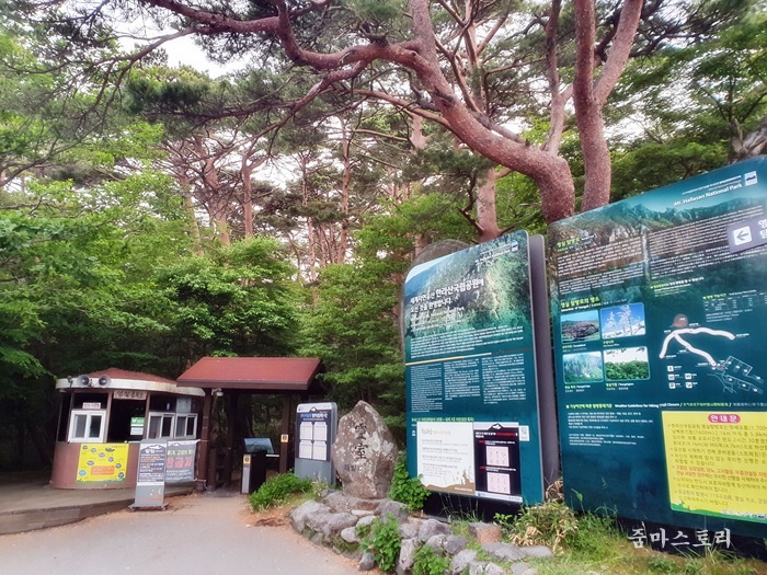 이른 새벽 3시 30분 일어나 조식 간단히 먹고 분주히 준비하고 영실 주차장에 도착했어요. 오전 5시부터 등반할 수 있어 집에서 4시에 출발했는데 이미 많은 분들이 오셨더군요. 1 주차장에 주차하려면 일찍 가야 합니다. 거기가 영실 통제소 바로 앞 주차장이거든요.