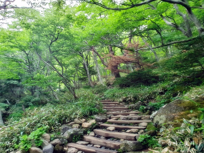 너무 어둑해지면 길이 좀 험할까 봐 날이 좀 밝을 때 올라갔어요. 푸른 녹음과 새소리 선선하게 불어오는 아침 공기가 너무 좋더군요.