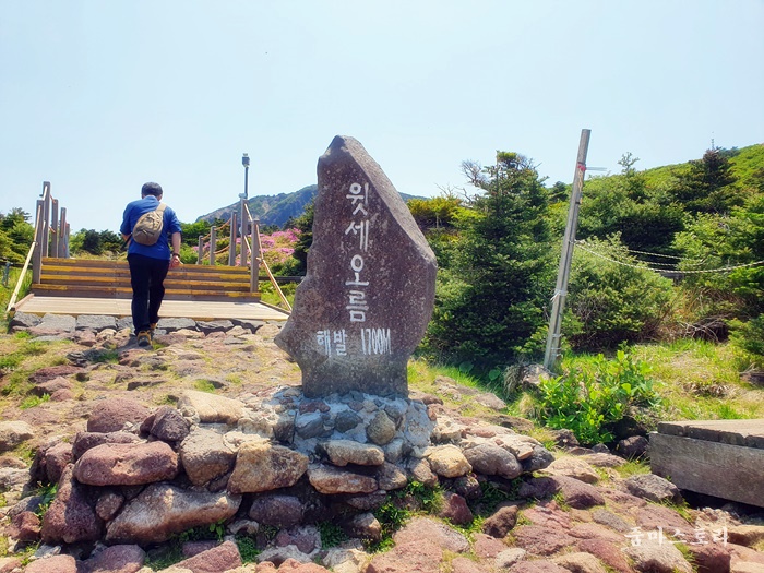 초고 난이도 코스만 통과하면 윗세오름에 도착해요. 이곳에서 간단히 간식을 먹고 쉴 수 있답니다.