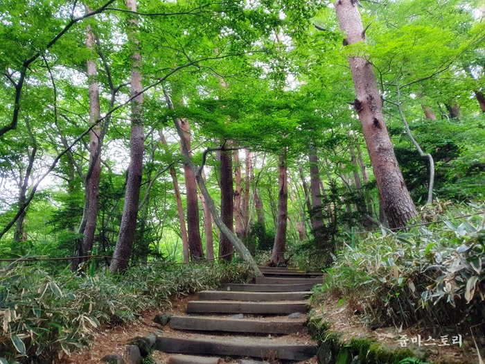 너무 어둑해지면 길이 좀 험할까 봐 날이 좀 밝을 때 올라갔어요. 푸른 녹음과 새소리 선선하게 불어오는 아침 공기가 너무 좋더군요.