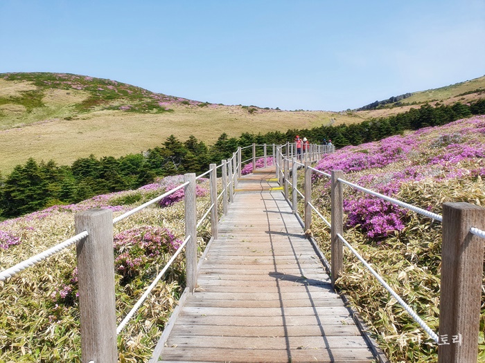 한라산에 높이 오르면 오를수록 철쭉들이 눈에 보이더군요. 생각보다 더 화사한 모습에 힘든 것도 잠시 잊게 되었습니다.