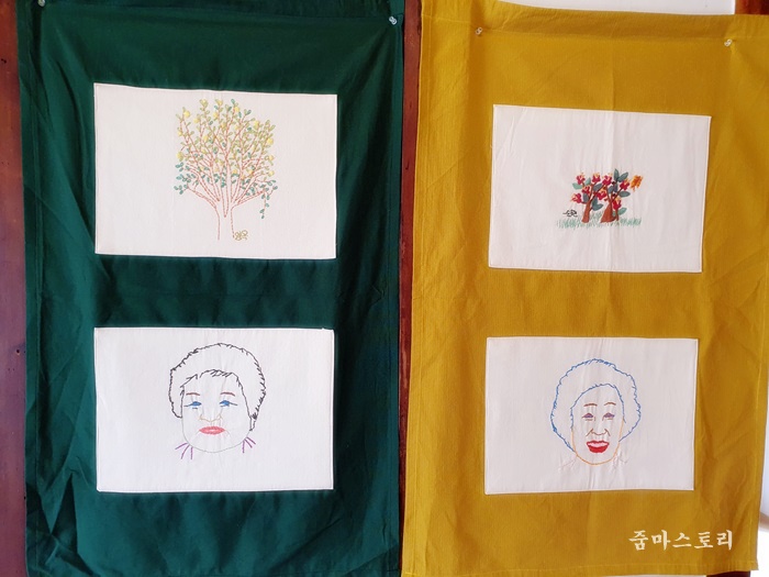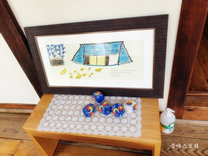 할머니들의 작품 같아 보이는 것들이 이곳저곳에 전시되어 있는 것이 눈에 띄었습니다. 제주스러움이 가득 묻어나는 작품이었네요.