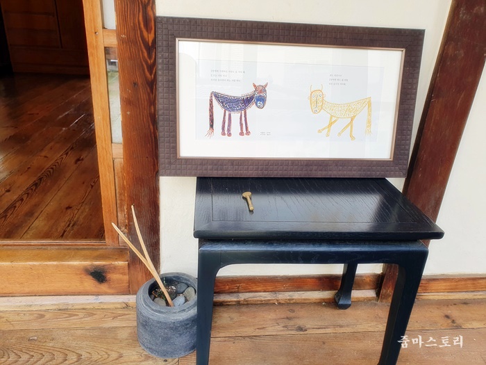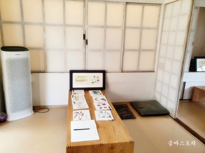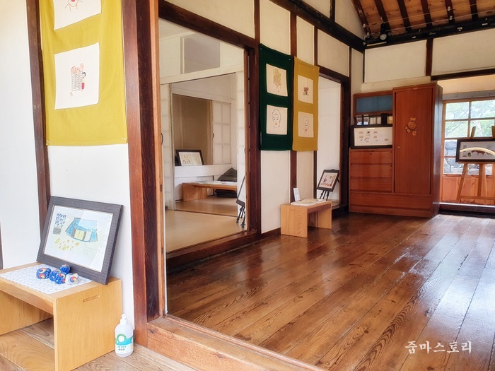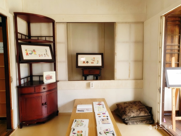 방에 들어가면 아이들이 볼 수 있는 동화책이 테이블에 전시되어 있습니다. 물론 볼 수도 있어요. 아이들과 함께 이곳을 찾는다면 조용하게 책을 보고 가면 괜찮겠죠.