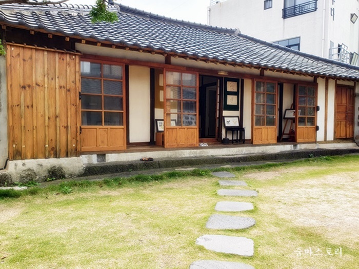 높은 건물에 가려져 있어서 자칫 지나기 쉽지만 그래도 다른 건물에 비하면 눈에 띕니다. 돌담 사이로 옛 가옥이 있기 때문이지요.