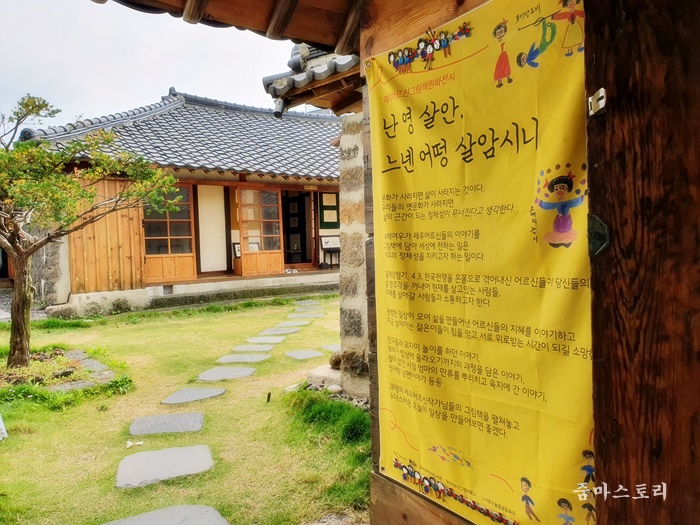 돌담과 오래된 건물 그리고 그 속에 전시된 오래되어 보이는 그들만의 추억 작품들이 하나하나 자세히 보게 되었습니다. 제주도의 삶을 조금은 이해하는 시간도 되었던 것 같네요.