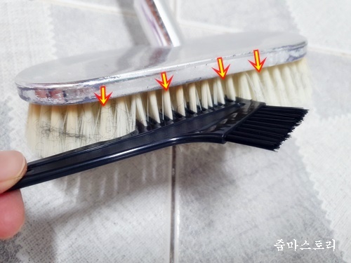 그냥 청소하려다 영 눈에 거슬려 솔에 묻은 머리카락부터 제거하기로 했습니다.