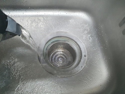 그다음 배수구에 뜨거운 물을 부어 줍니다. 그리고 뚜껑을 닫아 주세요.